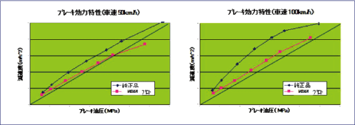 ・ブレーキローターの磨耗量は純正品に比べて大幅に減少しております。